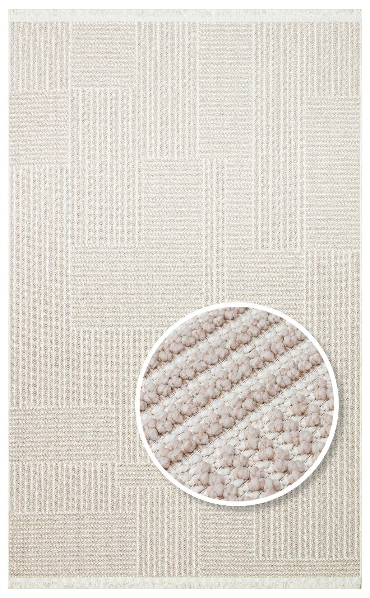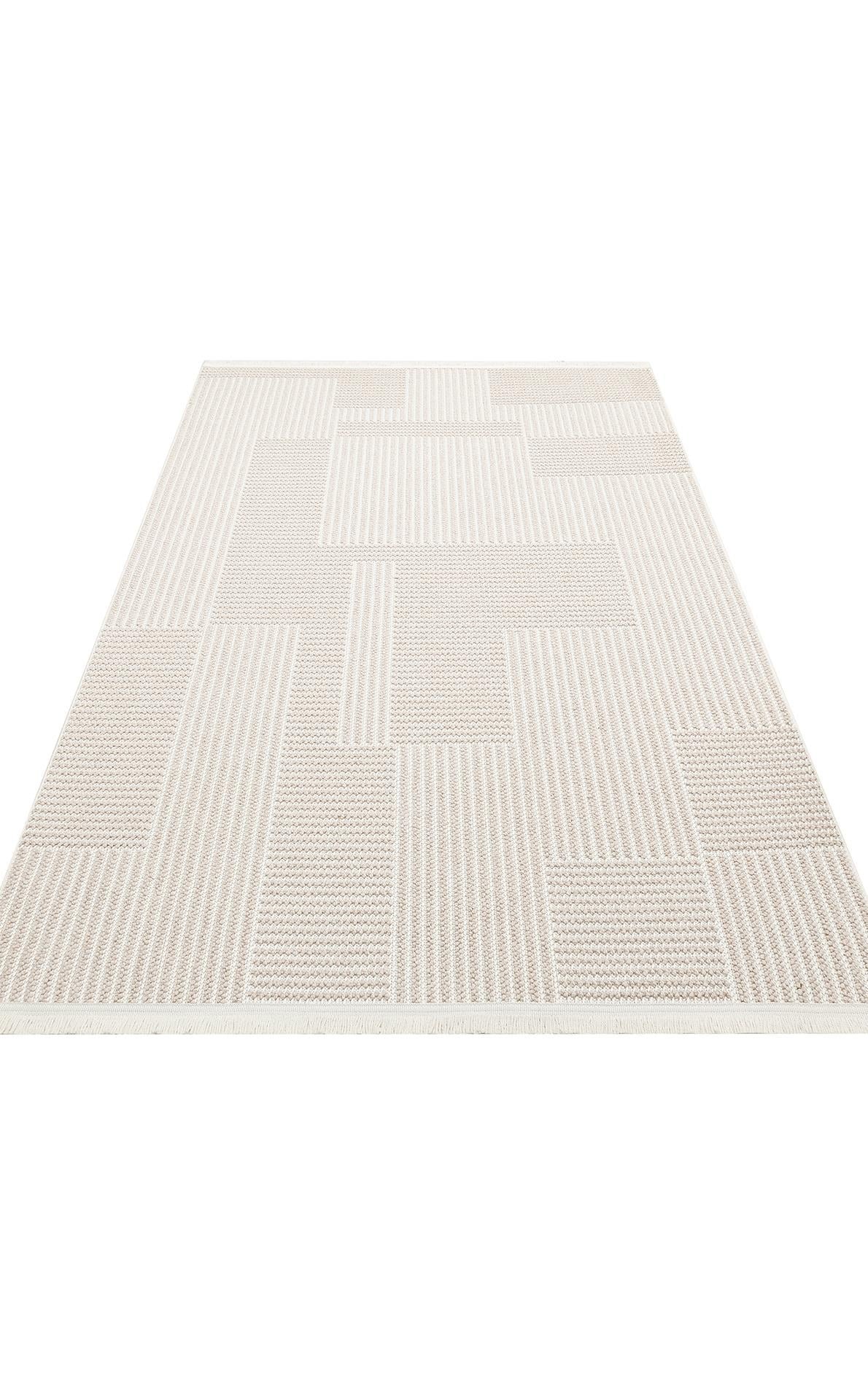 MOTTO MOT 12 BEIGE WHITE Yumuşak Tuşeli Örgü Dokuma Modern Makine Halısı
