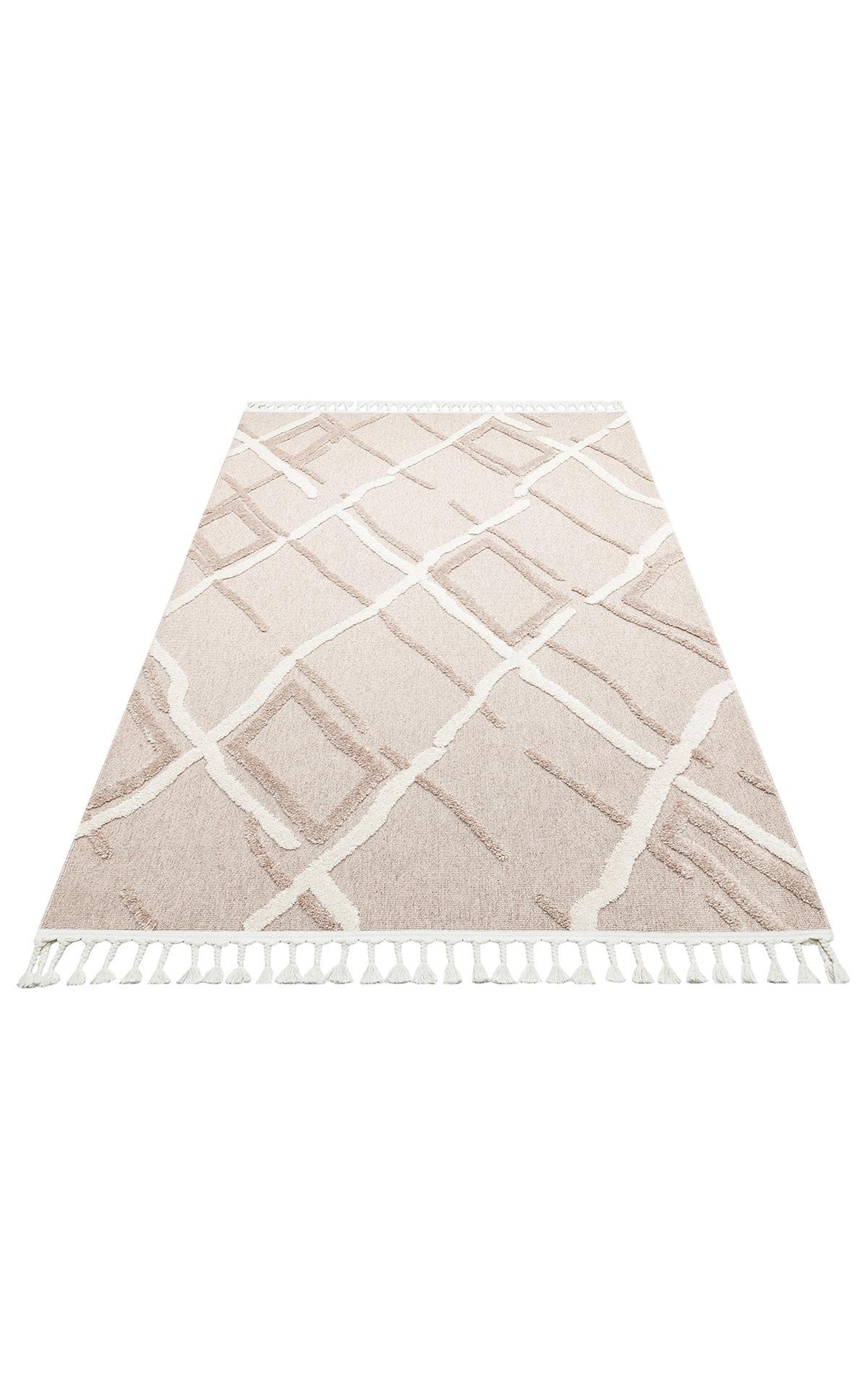 TERAZZO TRZ 03 BEIGE WHITE Hav Toz Vermez Yumuşak Dokulu Etnik Örgü Desenlere Sahip Modern İskindinav Halı
