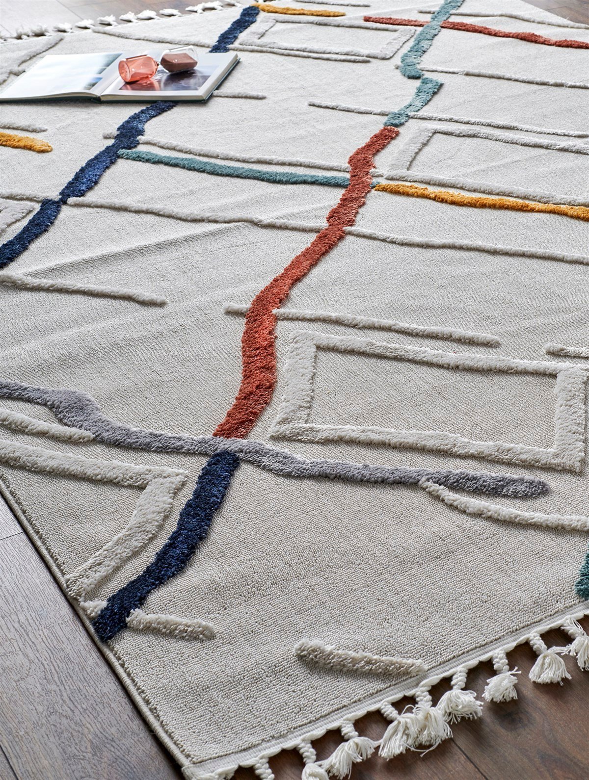 TERAZZO TRZ 05 MULTY Hav Toz Vermez Yumuşak Dokulu Etnik Örgü Desenlere Sahip Modern İskindinav Halı