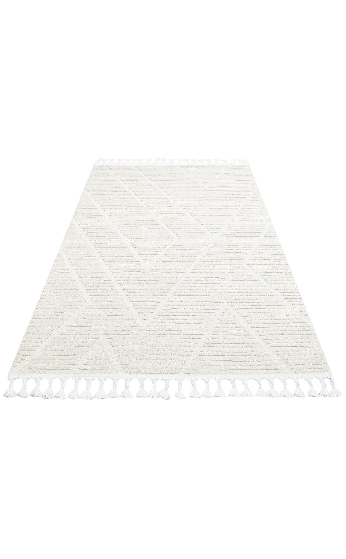 TERAZZO TRZ 08 WHITE Hav Toz Vermez Yumuşak Dokulu Etnik Örgü Desenlere Sahip Modern İskindinav Halı